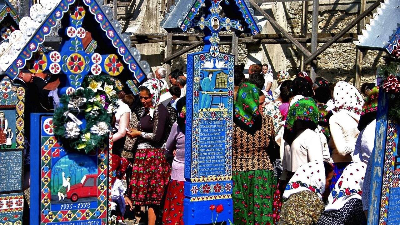 Je supprime la publicitéDans le nord de la Roumanie, les habitants du village orthodoxe de Sapânta ont une conception de la mort singulière, l'attendant même avec sérénité. Les familles des défunts économisent pendant plusieurs années pour commander au sculpteur Dumitru Pop une croix en bois, richement ornée de symboles, ainsi qu'une iconographie et une épitaphe résumant la vie des défunts.