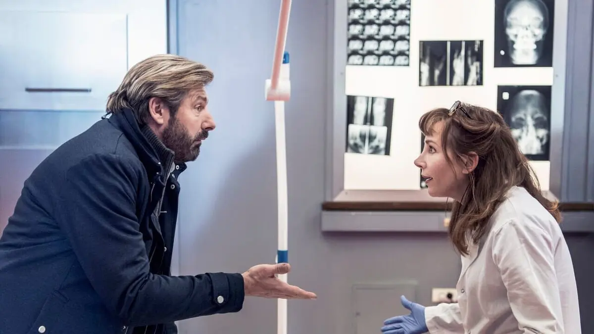 L’intrigue est originale, mais son déroulement est excessivement parasité par du grotesque à prétention comique, avec une caméra qui s’obstine à montrer que Ehle n’est plus une jeune enquêtrice, des policiers qui s’abêtissent à un degré incroyable, des inserts insensés, du glamour infantile, etc. Bon point : la brièveté de l’irruption incongrue de Berléans* et un signal clair de suspension de son cdd (CQFD).* Faire intervenir une grande tête d’affiche dans un série qui s’use, est un artifice classique, sinon habile, pour faire remonter la mayonnaise. A mon avis, c’est raté !