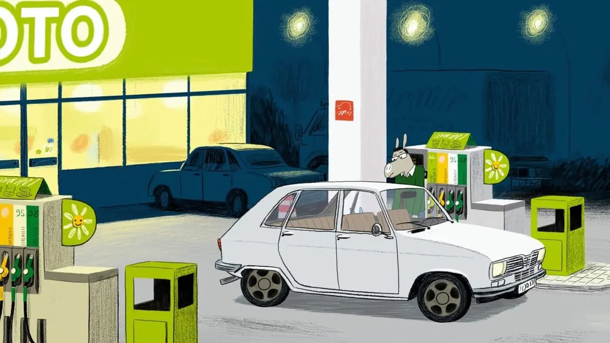 La famille Picotin s'arrête pour faire le plein d'essence à la station Toto. Ariol cumule des points pour obtenir les fameuses "pods d'âne"...