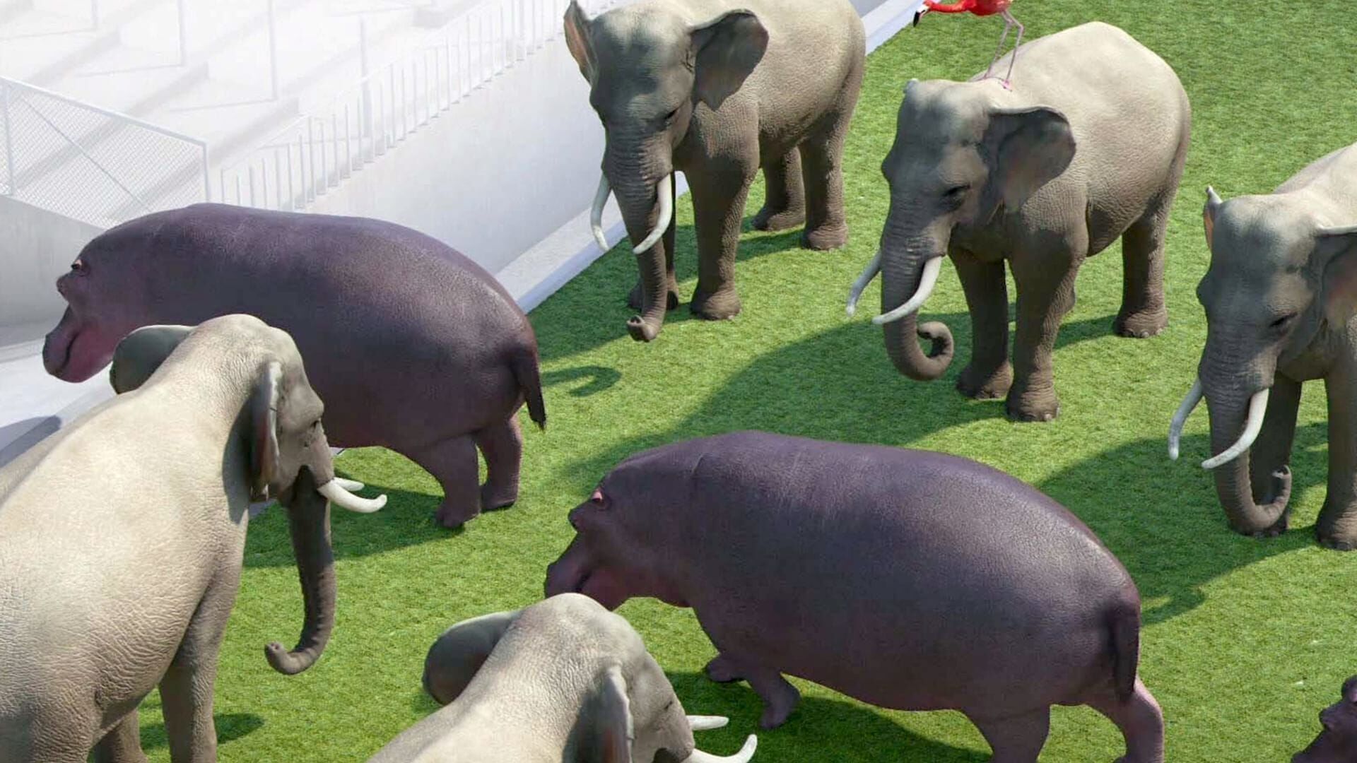Un flamant rose arbitre un match de football entre éléphants et hippopotames. Soudain, un joueur s'écroule dans la surface de réparation…