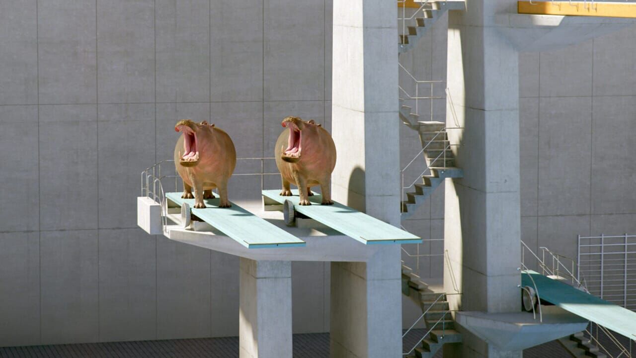 Deux hippopotames lourdauds apprennent à leurs dépens que les plongeoirs ne sont pas des trampolines.