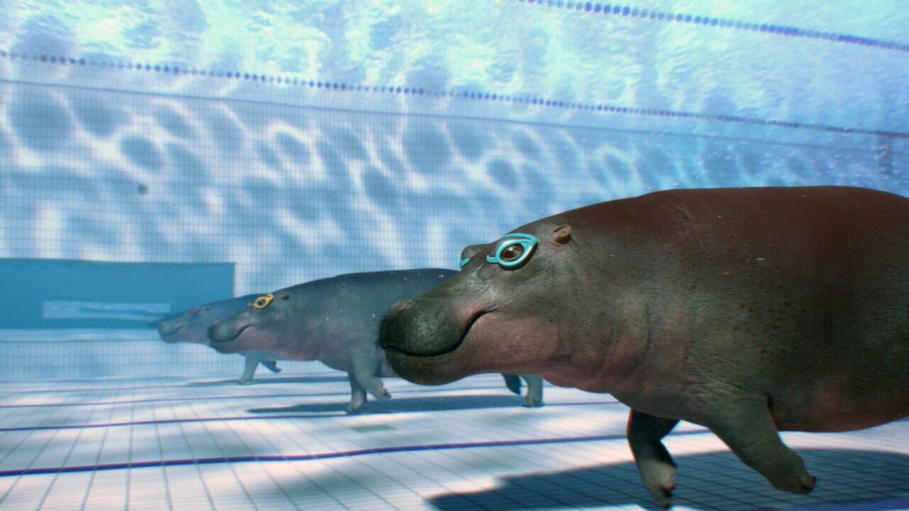 Une otarie enseigne à un hippopotame maladroit comment faire une culbute sous l'eau dans le but de remporter la grande finale du 100 mètres.