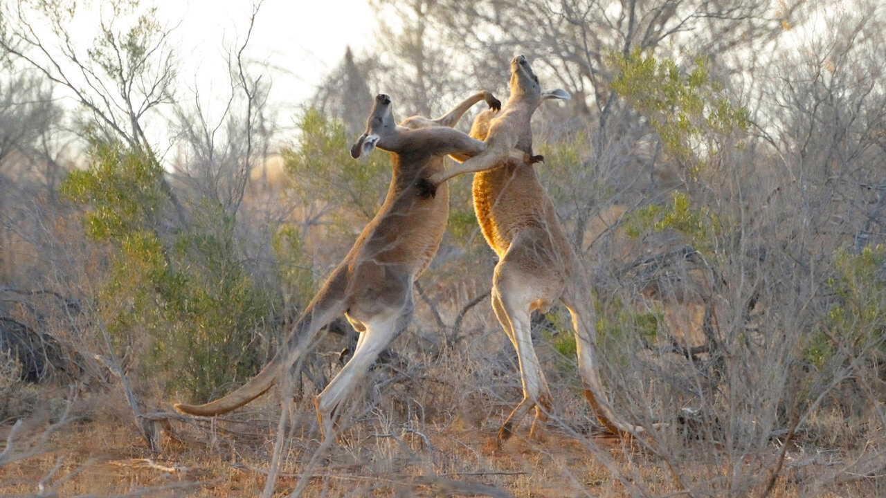 Je supprime la publicitéL'Australie constitue le continent habité le plus sec de la planète, avec 70 % de zone aride (environ 5 millions de kilomètres carrés). Pour se cacher dans le désert, reptiles, mammifères et oiseaux doivent compter sur des comportements et des adaptations physiologiques finement réglés. Parent du dragon de Komodo, le varan gigantesque dévore tout ce qui bouge, dont des marsupiaux. Ceux-ci sont aussi menacés par des chats domestiques redevenus sauvages. Mais le combat de la soif reste le plus éprouvant à livrer pour les espèces. Maîtres en la matière, les kangourous roux peuvent survivre avec très peu d'eau. Si la saison des amours rend belliqueux les reptiles, dont le scinque rugueux, l'un des rares lézards monogames, chez les émeus, c'est le mâle qui élève seul les petits.