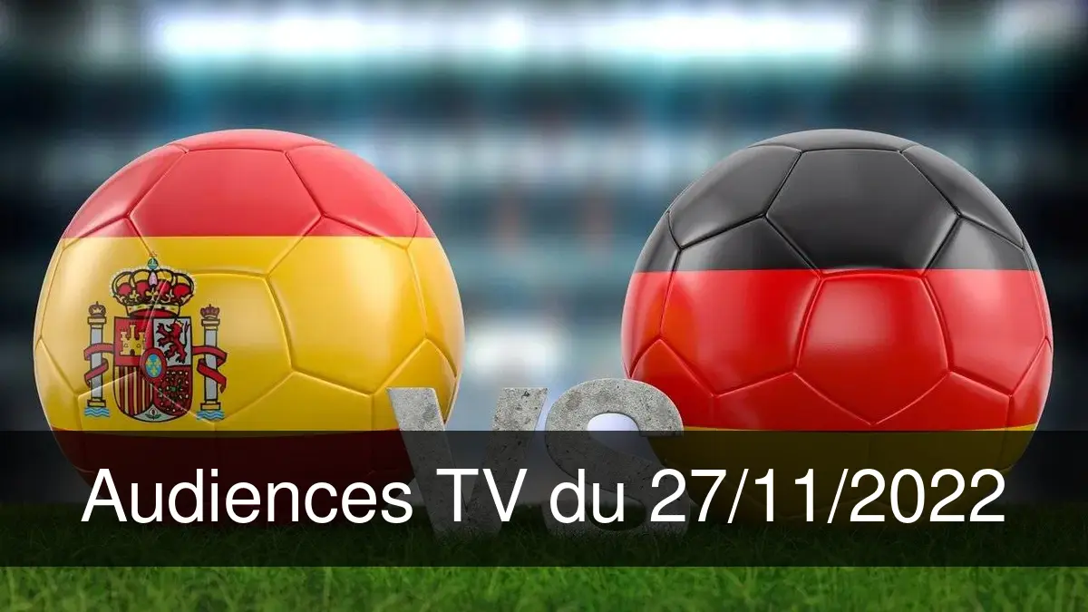28/11/2022 26/11/2022Ce soir-là, TF1 est arrivé en tête avec "Espagne / Allemagne - Football Coupe du monde 2022", devant France 2 avec "La chance de ma vie" et France 3 avec "Inspecteur Barnaby".