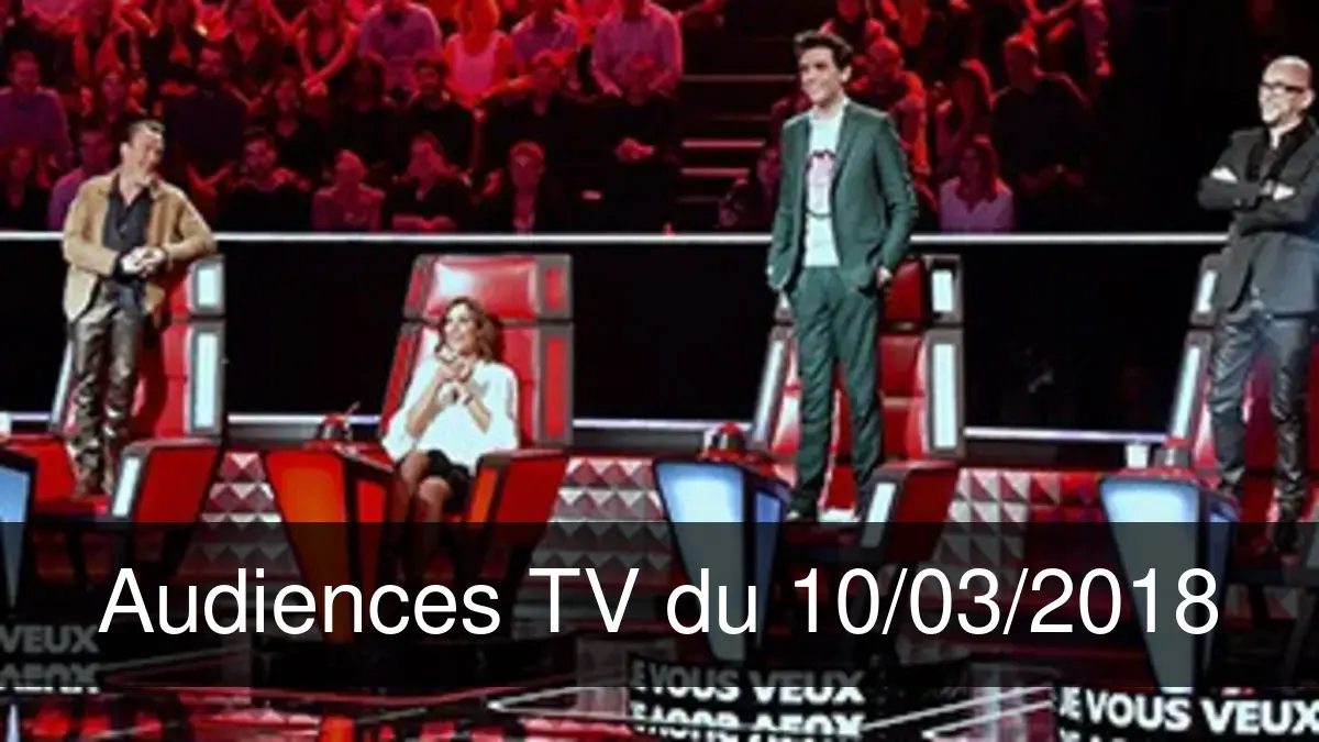 11/03/2018 09/03/2018Ce soir-là, TF1 est arrivé en tête avec "The Voice, la plus belle voix", devant France 3 avec "Meurtres à..." et France 2 avec "N'oubliez pas les paroles 100% tubes".