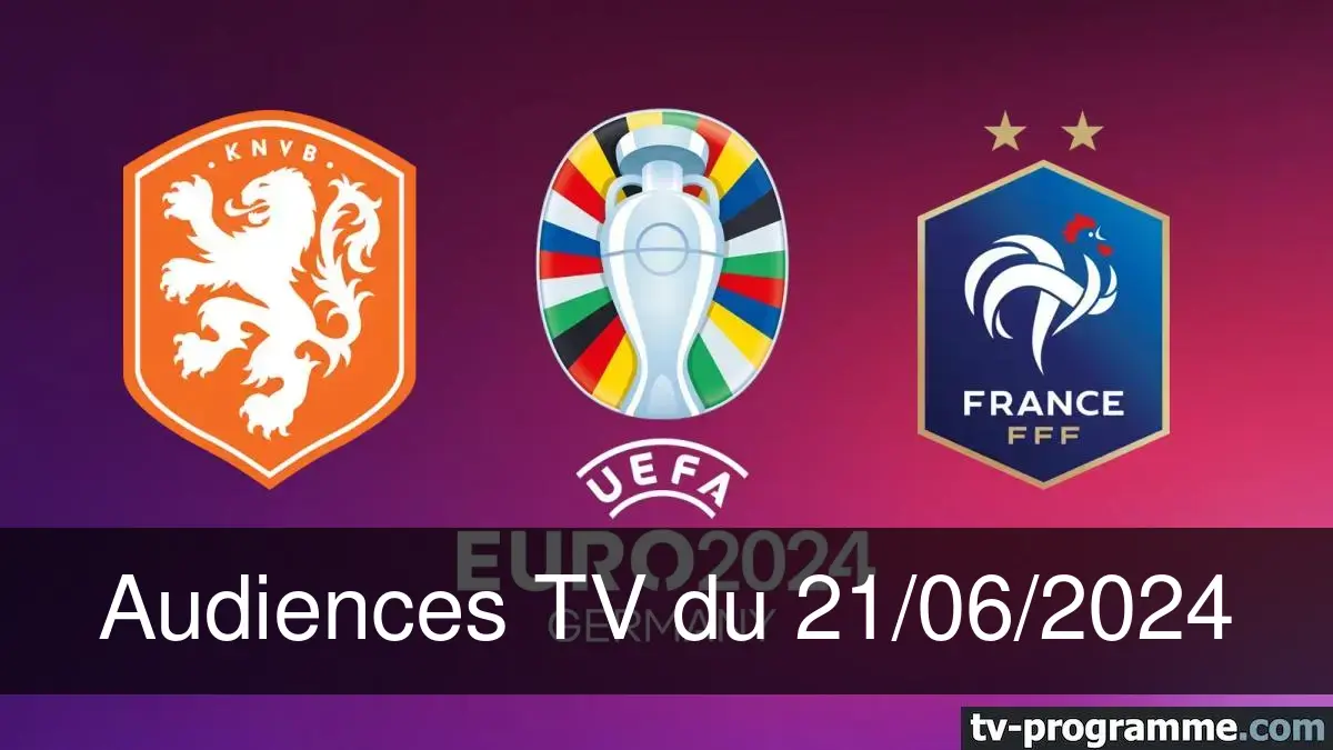 22/06/2024 20/06/2024Ce soir-là, M6 est arrivé en tête avec "Pays-Bas - France - Football Euro 2024 2024", devant France 2 avec "Tropiques criminels" et TF1 avec "30 ans d'émissions cultes".