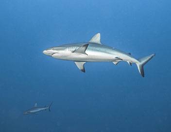 Guillaume et Marie observent la faune marine exceptionnelle de Moorea, notamment le requin, qu'ils découvrent avec Serge Planes, directeur de recherche au CNRS.