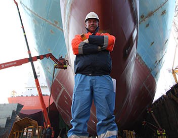 La construction du porte-conteneurs Triple E : le pont doit être rapproché de la poupe afin d'empiler plus de conteneurs en proue et d'assurer au capitaine plus de visibilité.