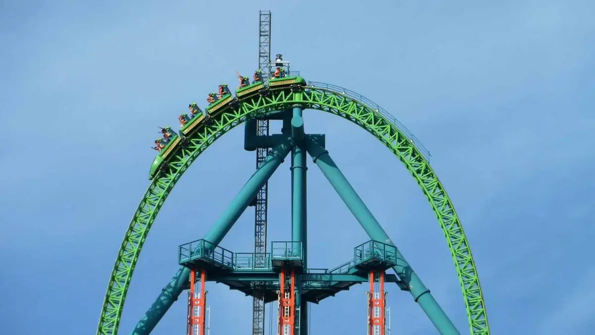 Je supprime la publicitéGros plan sur le célèbre parc d'attractions "Six Flags Great Adventure", situé aux abords de la ville de Jackson, dans le New Jersey. Ce lieu à part abrite une attraction qui donne la sensation aux gens de chuter d'une tour de plusieurs étages : le "Zumanjaro Drop of Doom". Constituée de trois tours de chute, les plus hautes du monde, l'attraction est adossée au plus haut circuit de montagnes russes jamais construit. Une fois installés dans la nacelle, les visiteurs font une chute libre de plus de 120 mètres de haut à la vitesse impressionnante de 144 kilomètres / heure.