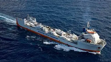 Des ingénieurs maritimes transportent une flotte d'énormes yachts, d'une valeur de plus de 80 millions de livres, de Gêne, en Italie, jusqu'à Lauderdale, en Floride.