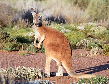 Je supprime la publicitéSon royaume est le désert : au coeur de l'Australie vit le plus grand marsupial sur terre, le kangourou roux. Avec des mois de sécheresse, de chaleur torride et seulement quelques touffes d'herbes sèches, vivre ici requiert un mental à toute épreuve. Tout en muscle, le géant roux saute à travers l'Outback sur ses puissantes pattes arrière, un moyen d'économiser de l'énergie tout en se déplaçant.