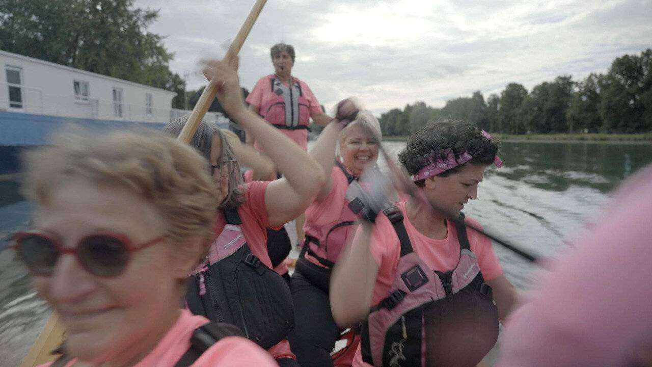 Claire, Sylviane et Gribouille ont un point commun : elles ont toutes les trois joué un petit rôle dans la fiction "Le Souffle du dragon" aux côtés de Julie Gayet, Julie de Bona ou encore Arié Elmaleh. Elles y ont partagé une part de leur vraie vie : celle de femmes qui ont eu un cancer du sein et pour qui la pratique du Dragon Boat - un sport nautique d'équipe - participe à une résilience, tant sur le plan physique que psychologique. Solidarité, sororité, dépassement de soi, drainage lymphatique post-opération mammaire : les bienfaits de ce sport sont multiples et offrent à ces femmes la possibilité de mieux vivre leur cancer, pendant et après. Ces trois battantes sont suivies au rythme de cette pratique sportive d'origine chinoise qui séduit de plus en plus de Françaises.