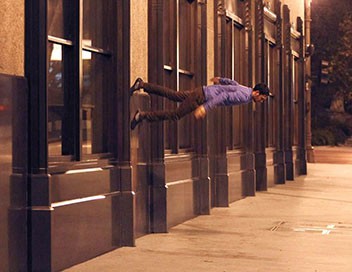 A Los Angeles, Dynamo entreprend de marcher le long de la façade du plus célèbre quotidien de la ville, le LA Times, dans sa partie la plus récente, constituée d'acier et de verre noir.