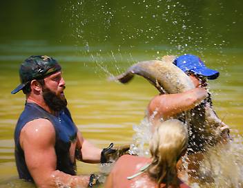Je supprime la publicitéEric rejoint deux légendes de la pêche en bikini pour du «grabbling», forme de pêche de poissons-chats à la main.