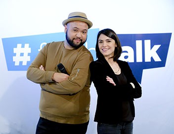 Dans un espace public, Sonia Chironi et Raphäl Yem animent un débat où les interventions se succèdent, ponctuées d'éléments chiffrés autour de la thématique abordée.
