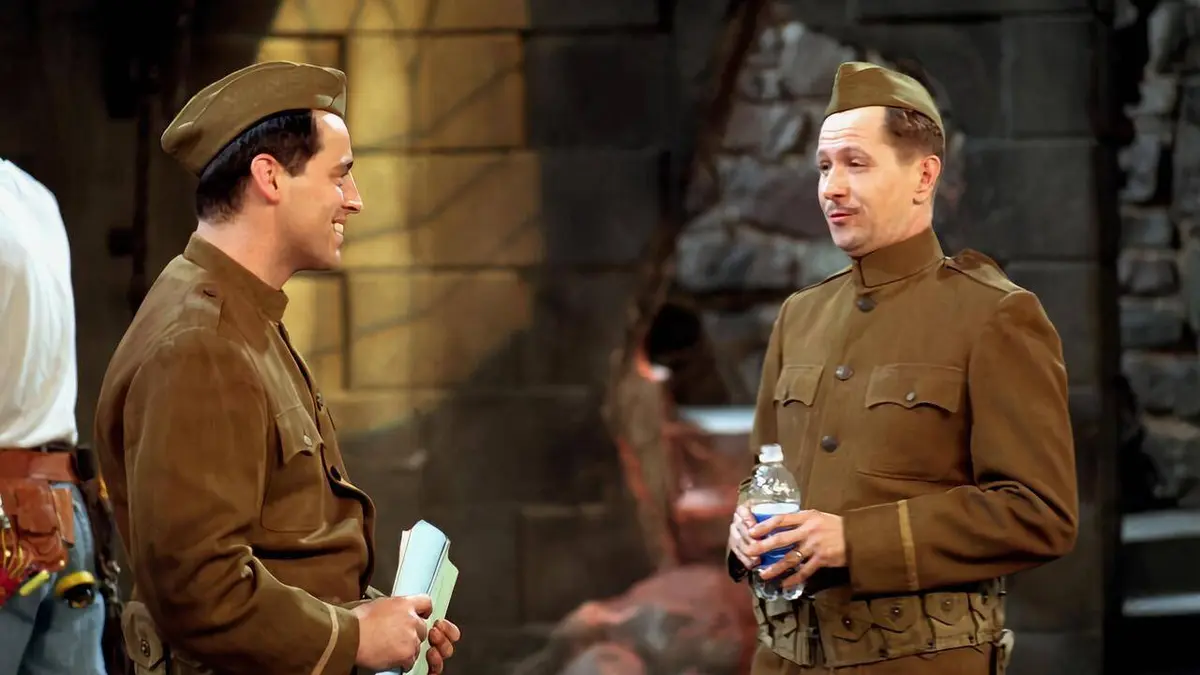 Le grand jour est enfin arrivé mais, bien sûr, rien ne se déroule comme prévu. Au grand désespoir de Monica ! Alors que toute la famille est enfin réunie pour l'ultime répétition avant la cérémonie de mariage, Chandler disparaît. Trop de pression, décidément. Ross part à sa recherche alors que Phoebe et Rachel s'occupent de Monica. Pendant ce temps, Joey, qui a été retenu pour jouer un soldat durant la Première Guerre mondiale, se retrouve face à Richard Crosby. Ce célèbre acteur ne peut interpréter son texte sans postillonner sur ses partenaires, ce qui pose un vrai problème à Joey...