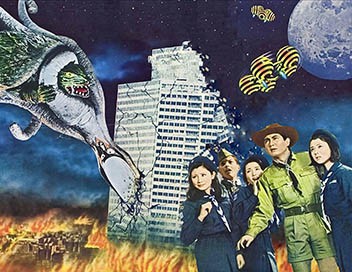 Un vaisseau extraterrestre menaçant s'approche dangereusement de la Terre. Heureusement, la tortue géante Gamera veille : elle détruit l'astronef. Mais les extraterrestres ont le temps d'envoyer un message à leurs compatriotes qui vivent cachés sur Terre. Ils découvrent le point faible de Gamera...