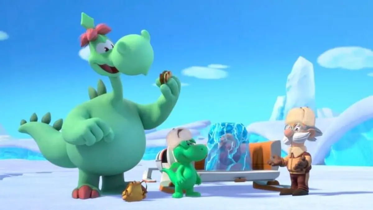 Grisù et son papa partent sur la calotte glaciaire pour aider le professeur Smeraldo à récupérer un œuf de dragonosaure.