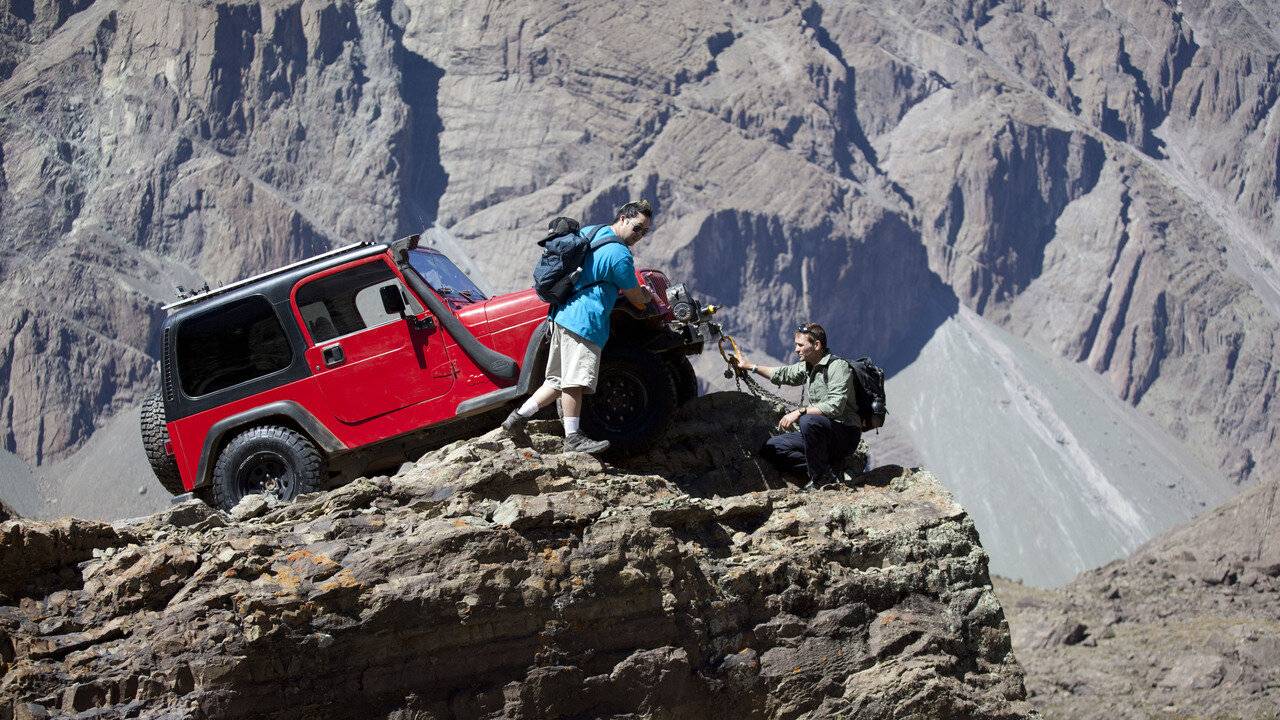 Gary Humphrey, ancien membre des forces spéciales britanniques et Bill Wu, mécanicien, pilotent leur 4x4 du sommet d'un volcan jusqu'à la ville la plus proche.