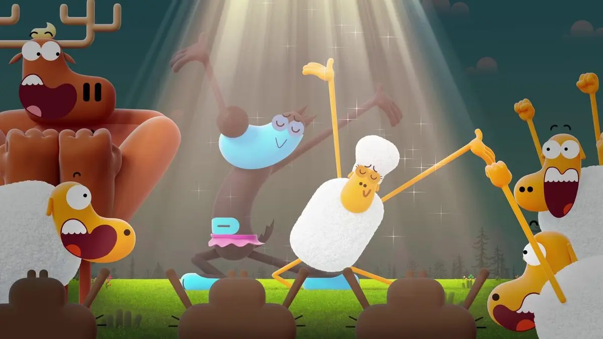 En voulant attraper le loup, Wanda atterrit dans ses bras et se met à danser avec lui. Le loup profite de ses talents de danseur pour narguer Trico.