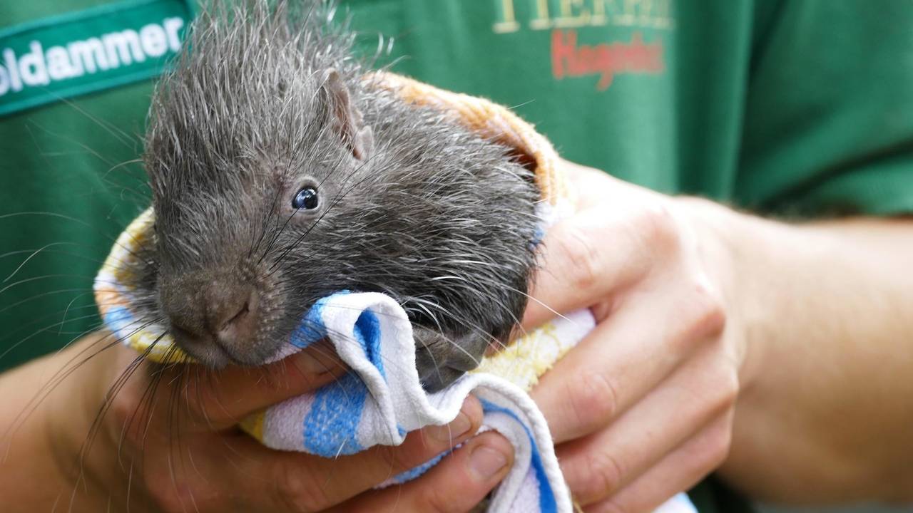 Je supprime la publicitéLes piquants d'un porc-épic adulte peuvent mesurer jusqu'à quarante centimètres. Il s'en sert pour se défendre en cas de danger, surtout quand on menace ses petits. Michaël, le vétérinaire, en a déjà fait les frais. Avant d'examiner les nouveau-nés, il prend bien soin d'éloigner les adultes.