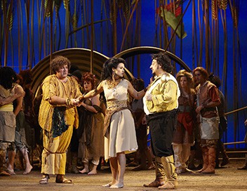 La riche et belle Adina rit de la légende de Tristan et Iseult et de leur philtre d'amour, qu'elle est en train de lire sous le regard transi de Nemorino, le charmant paysan qui travaille sur son domaine. L'homme est plutôt beau, Adina en est fort consciente et accueillerait avec plaisir sa déclaration. Mais Nemorino manque d'audace et sa jolie patronne s'impatiente. D'autant plus que le séduisant sergent Belcore, plus sûr de lui, vient d'arriver au village et lui fait une cour pressante. Stimulé par cette rivalité, Nemorino se laisse attraper par un charlatan, qui lui vend pour «breuvage d'amour de la reine Iseult» une fiole d'authentique vin de Bordeaux. Rendu euphorique par le liquide, Nemorino, au lieu de lui faire sa demande, badine avec Adina en simulant l'indifférence. Laquelle, piquée au vif, promet sa main au ténébreux sergent...