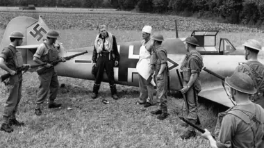 En 1940, un avion de chasse allemand est contraint d'atterrir en catastrophe sur le sol britannique. Interrogé par un officier, le pilote ne révèle rien, mais promet à ses gardiens qu'il s'évadera avant longtemps. Promesse qu'il honore peu après, en prenant la poudre d'escampette...
