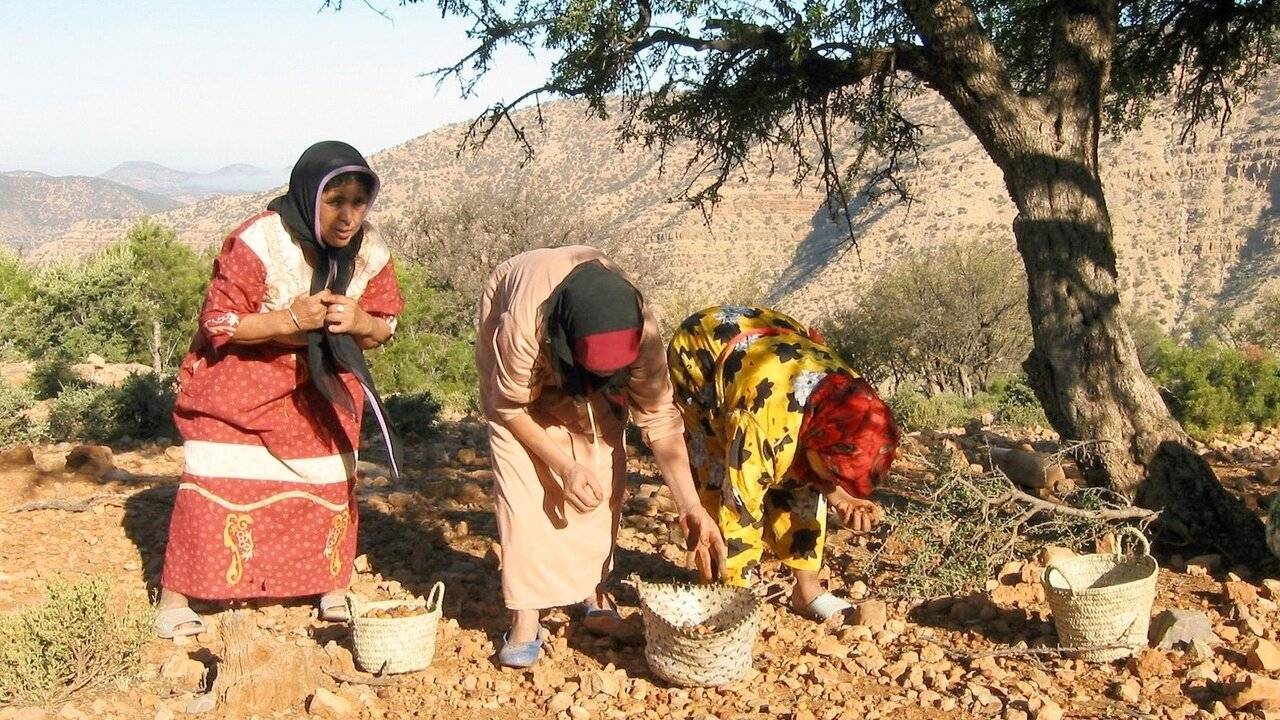 Surnommée l'or du désert, l'huile d'argan, produite au Maroc par les femmes berbères, est célèbre pour ses vertus cosmétiques, culinaires et diététiques.