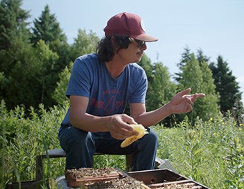 Anicet présente l'une de ses spécialités : l'élevage d'abeilles reines. Un art précieux, peu pratiqué au Canada, qui revêt une grande importance.