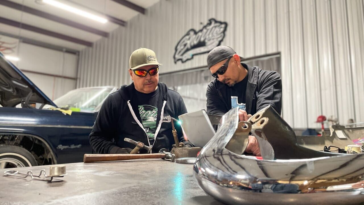 Je supprime la publicitéShorty et son équipe restaurent entièrement une Chevrolet Impala décapotable de 1966 : peinture, moteur, intérieur et toit neufs, et une sacrée dose de rouille en moins.