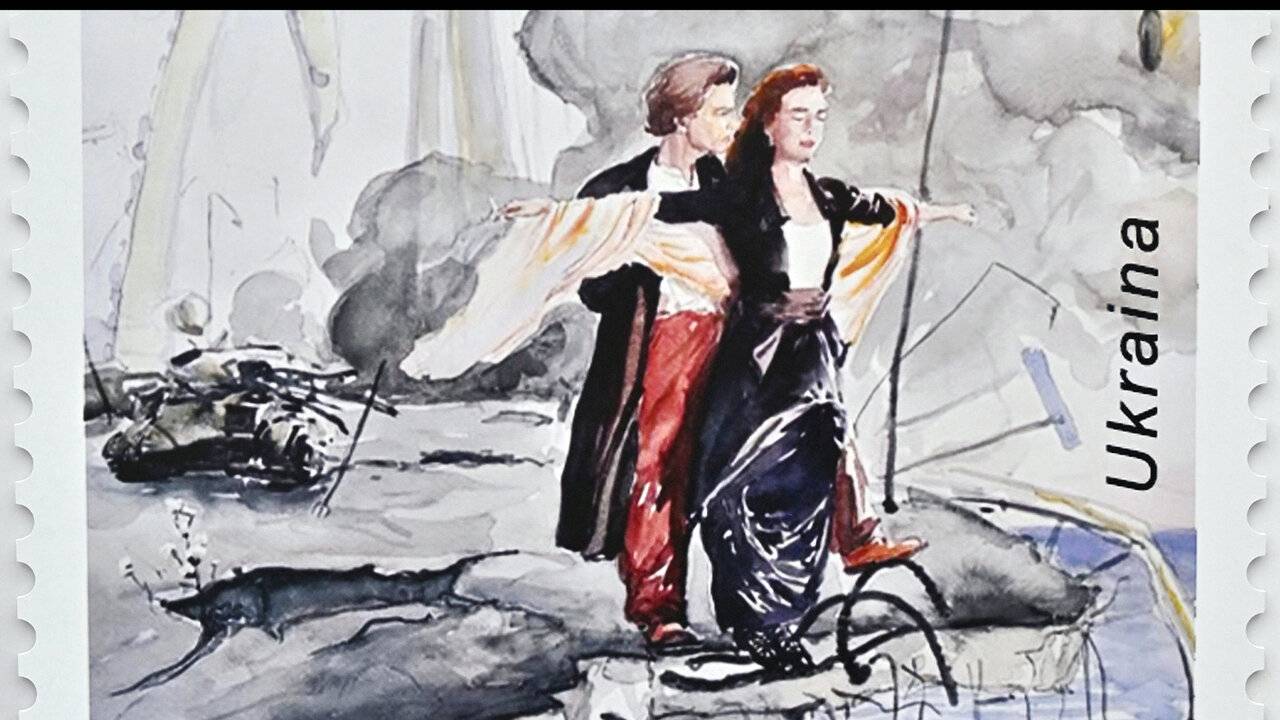 Quelques heures après l'explosion du pont de Crimée, la poste ukrainienne a dévoilé un timbre représentant le célèbre couple du film Titanic sur le pont détruit.
