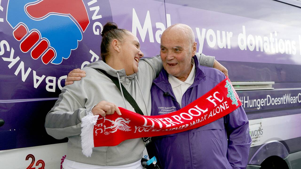 La pauvreté en Grande-Bretagne augmente. C'est pourquoi les supporters des deux grands clubs de football se sont unis à Liverpool pour distribuer de la nourriture aux nécessiteux.