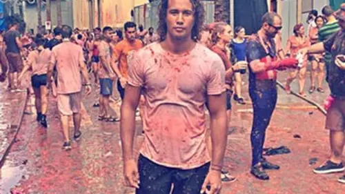 • Buñol, en Espagne, est le cadre d'une fête particulière, qui s'achève avec une bataille de tomates à laquelle participe Laurent Maistret. : La Tomatina