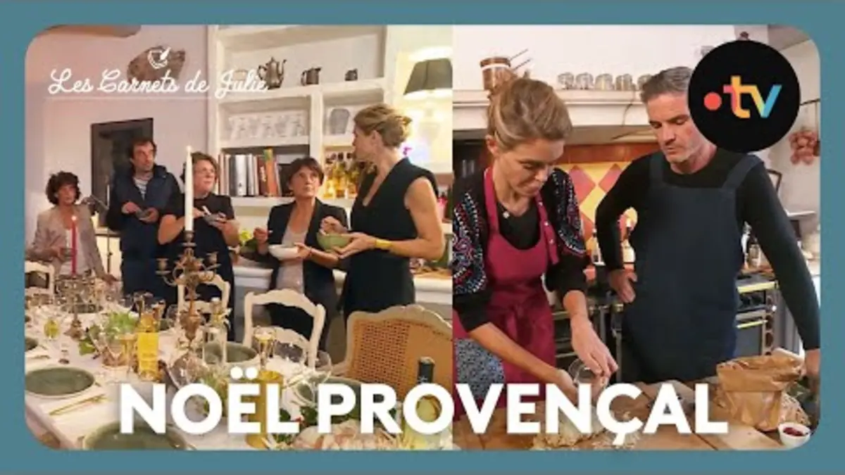 Pour préparer ce repas de fête, Julie sera accueillie par des amis de Dominique, Eric et Nathalie Barale, dans leur Mas à Vence. Ensemble, ils vont préparer un menu de choix : filets de loup sauce aux agrumes, raviolis aux courges et sauce aux noix. Bagna cauda et huitres affinées sur la côte méditerranéenne viendront compléter le repas, sans oublier les traditionnels 13 desserts provençaux.