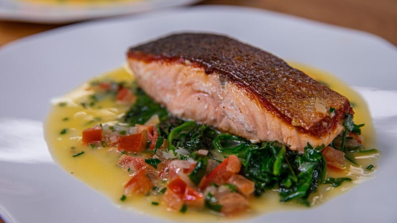 Je supprime la publicitéRecettes de saison pour Raymond. Au printemps, saumon aux épinards ; à l'automne, fricassée de champignons sauvages ; en hiver, tarte Tatin ; en été, amandine aux poires.