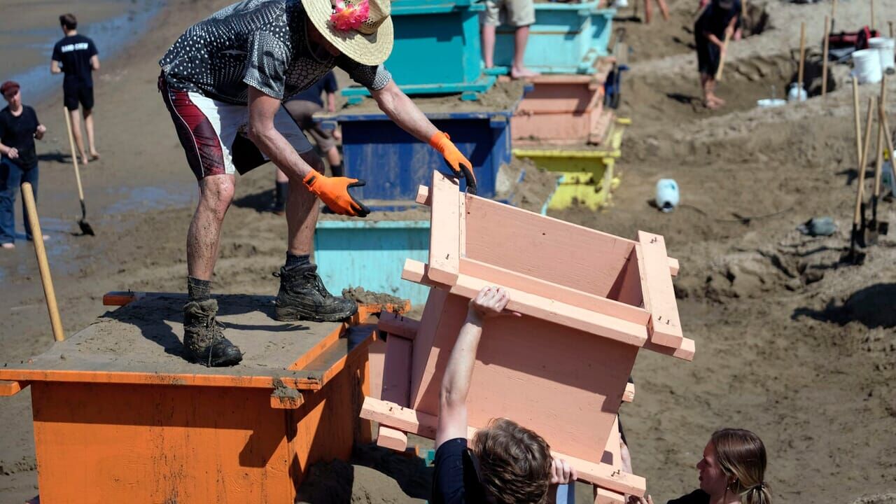 Je supprime la publicitéLes concurrents doivent réaliser un bâtiment de leur choix, mais de grande taille. Et il devra toujours être debout quand la marée arrivera.