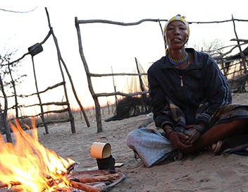 En Namibie, ils ne représentent plus que 3% de la population totale. Répartis en différents groupes en Namibie, au Botswana, en Afrique du Sud et en Angola, les Bushmen ne seraient plus qu'une centaine de milliers. Présents depuis 20 000 ans, les plus anciens habitants d'Afrique australe formaient autrefois un peuple nomade. Aujourd'hui, largement sédentarisés, ils sont relégués sur une terre dure, le désert du Kalahari. Les Bantous, agriculteurs sédentaires, puis les Hottentots, des éleveurs de bétail, les ont repoussés de leur terre natale, le Cap. Puis, pendant la colonisation, ce sont les Hollandais et les Britanniques qui les ont réduits aux franges des sociétés d'Afrique australe.