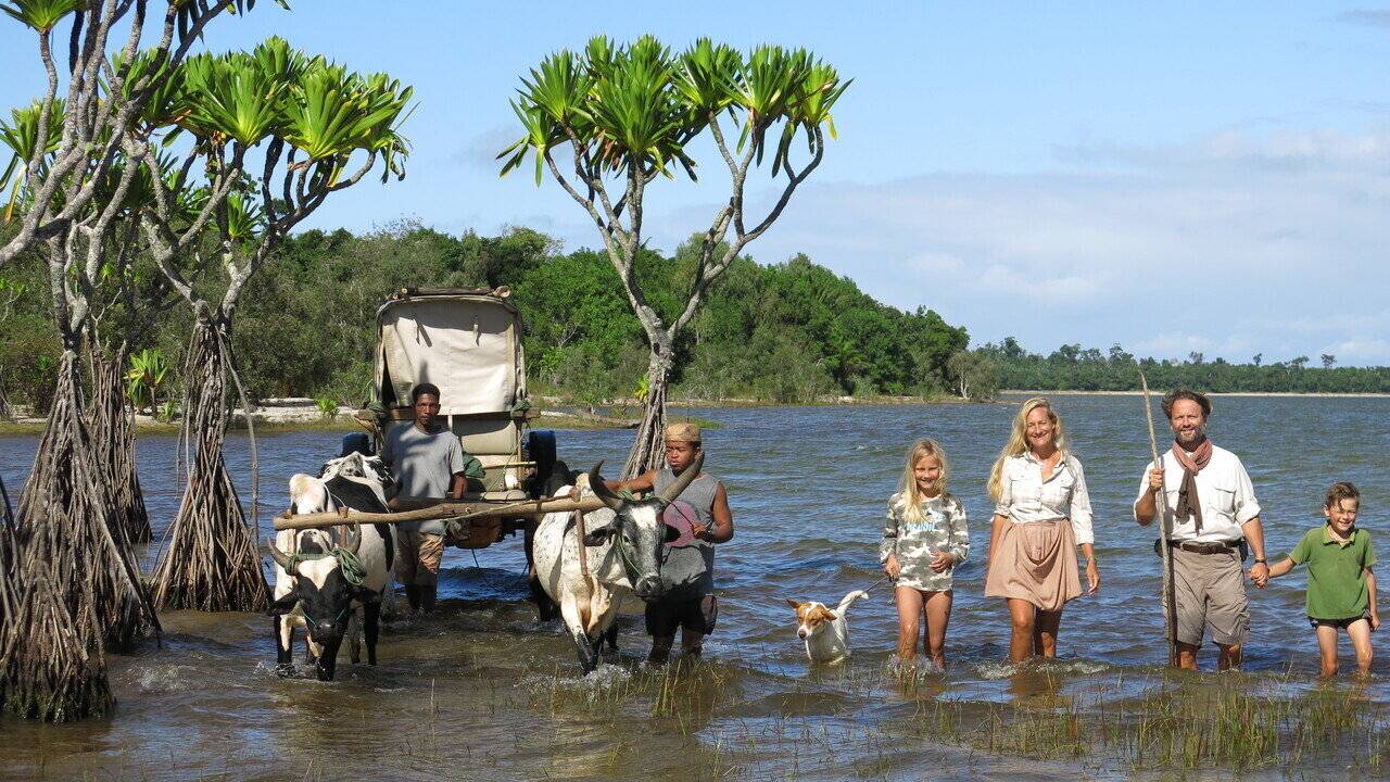 A bord de leur charrette à zébus, Sonia et Alexandre Poussin, et leurs enfants Philaé et Ulysse, parcourent les régions de l'ouest et du sud en empruntant d'improbables pistes, souvent interrompues ou fermées une partie de l'année par les grands fleuves. Au contact des communautés villageoises et des habitants de l'île, les Poussin partagent la vie quotidienne des paysans malgaches et découvrent leur artisanat et leurs initiatives de développement.