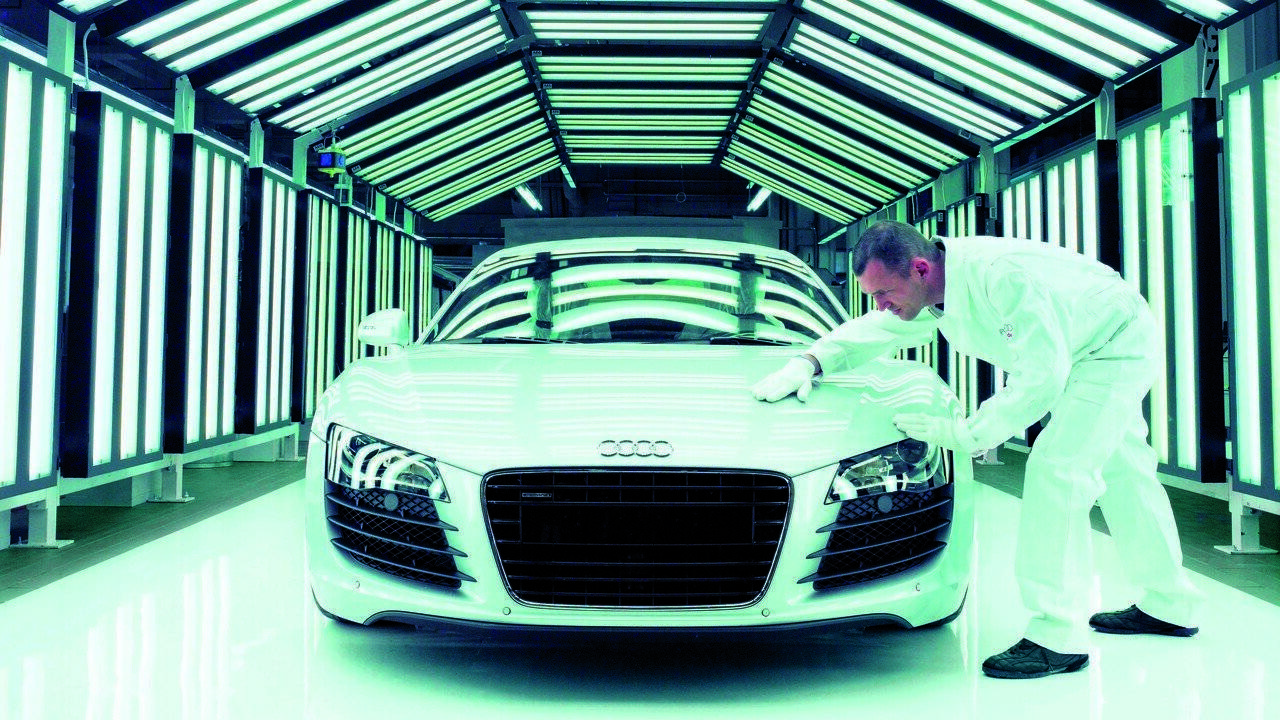 L'usine Audi de Neckarsulm, en Allemagne, fabrique une voiture de sport qui fait rêver : la R8. Avec elle, Audi abandonne son élégante image de berline pour créer une voiture révolutionnaire qui concurrence les modèles de Porsche et de Lamborghini. Cette sportive de prestige, mue par un moteur produisant plus de 400 chevaux, est un concentré de haute technologie qui affiche des performances époustouflantes.