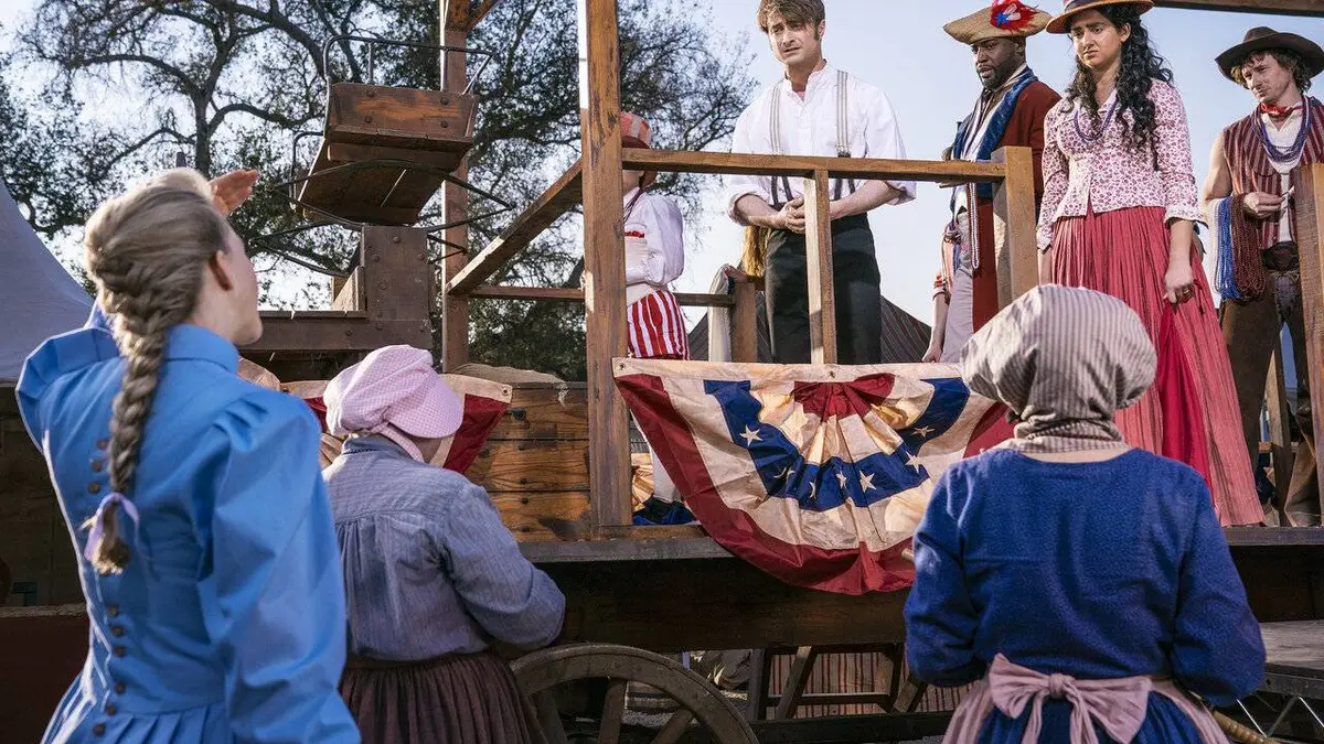 Le train de chariots s'arrête à Independence Rock pour célébrer le 4 juillet.