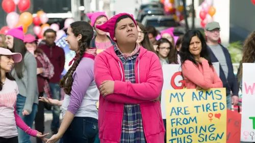 Claire, Haley, Alex, Lilly et Gloria se rendent à une manifestation en faveur des droits de femmes mais une crevaison change leur journée. Manny et Luke montrent également à cette journée leur soutien à la gent féminine. Ailleurs, Phil et Jay se fâchent par rapport à leur préposée de stationnement, et entrent en désaccord l'un contre l'autre. Et Cameron se sent exclu de la famille quand il découvre que Mitchell et Pam s'occupent du bébé mieux que lui.