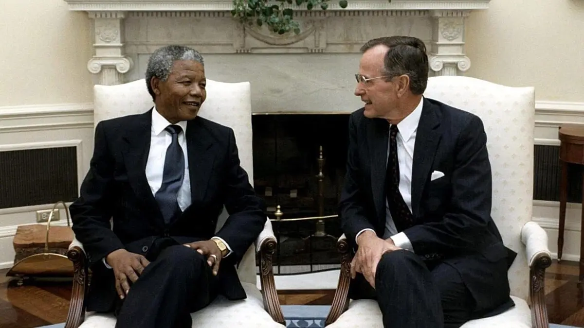 Libéré après vingt-sept ans passés dans les geôles sud-africaines, Nelson Mandela, 71 ans, entreprend une "tournée" mondiale. A New York, il est accueilli en héros. Pourquoi le président Bush l'a-t-il reçu alors que pour les Etats-Unis son parti, l'ANC, était considéré comme une organisation terroriste ?
