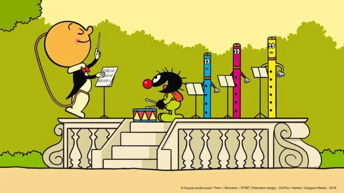Petit Poilu arrive sous un kiosque à musique où il découvre une fanfare formée de fifres et dirigée par un jeune chef d'orchestre avec une très grosse tête. C'est un bilboquet qui est si exalté qu'il en perd tout le temps sa tête, créant le chaos autour de lui. Heureusement Petit Poilu est là, plein d'astuces, et il finit par coller la tête du bilboquet sur son socle. Et en avant la musique!