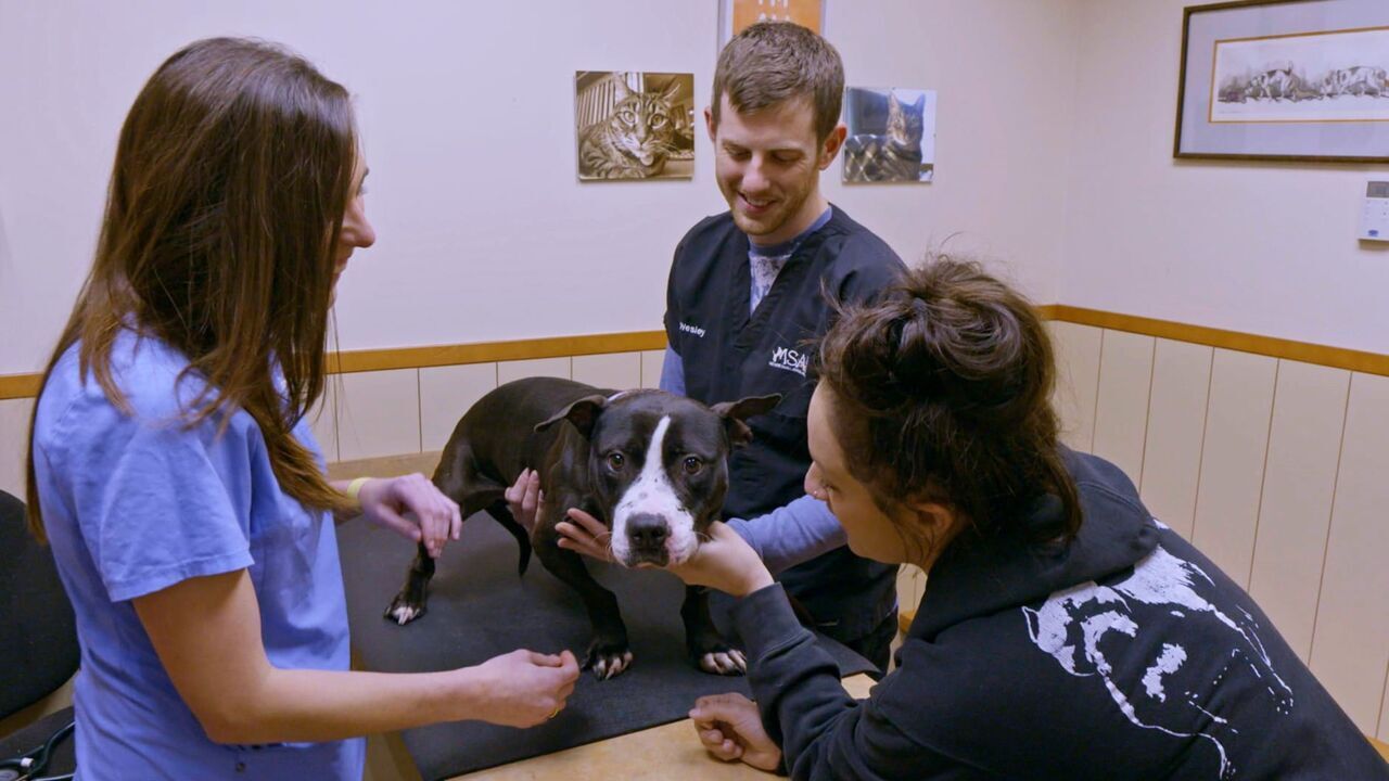Tania et Maria créent une maison de retraite pour chiens âgés dans un entrepôt. Lizzy vient en aide à un chien dont la peau est très abîmée.