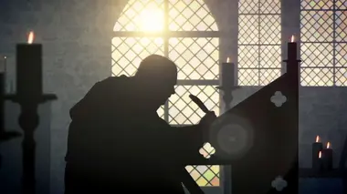 En 1450 à Mayence, Johannes Gutenberg travaille à la création d'une presse à imprimer et persuade Johannes Fust, un homme d'affaires, de financer son projet.