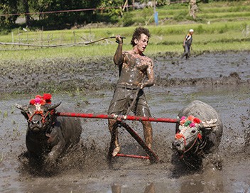 Je supprime la publicitéEn Indonésie, sur la petite île de Sumbawa, les six aventuriers participent à une course de buffles à travers un champ particulièrement boueux.