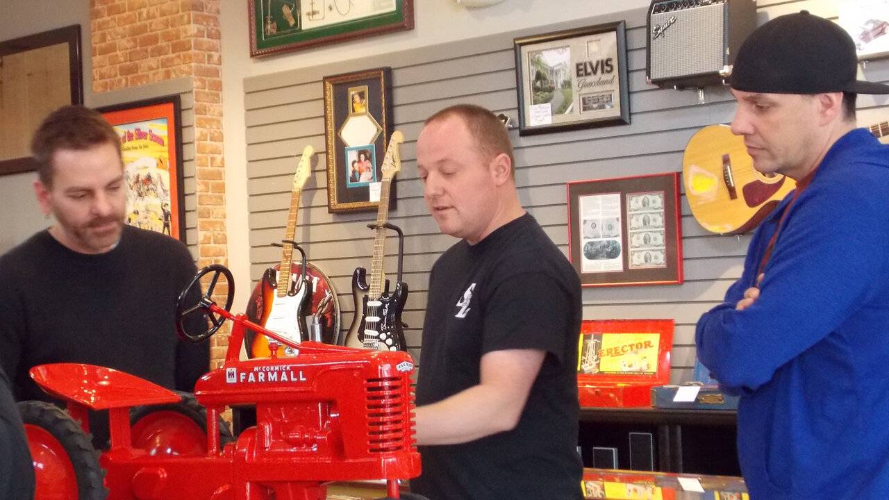 Je supprime la publicitéDe beaux objets sont déposés chez Branson Pawn, comme un flacon de pilules Evel Knievel, une licence Elvis Presley ou une peinture sur velours des Beatles.