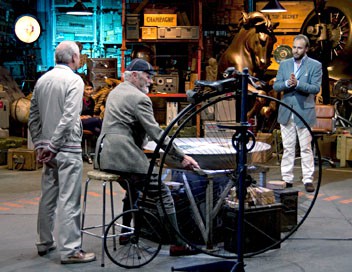 Les marchandeurs enchérissent sur un grand-bi, sur un fossile de mammouth âgé de 10000 ans et ils débattent sur l'authenticité d'oeuvres de Damien Hirst.