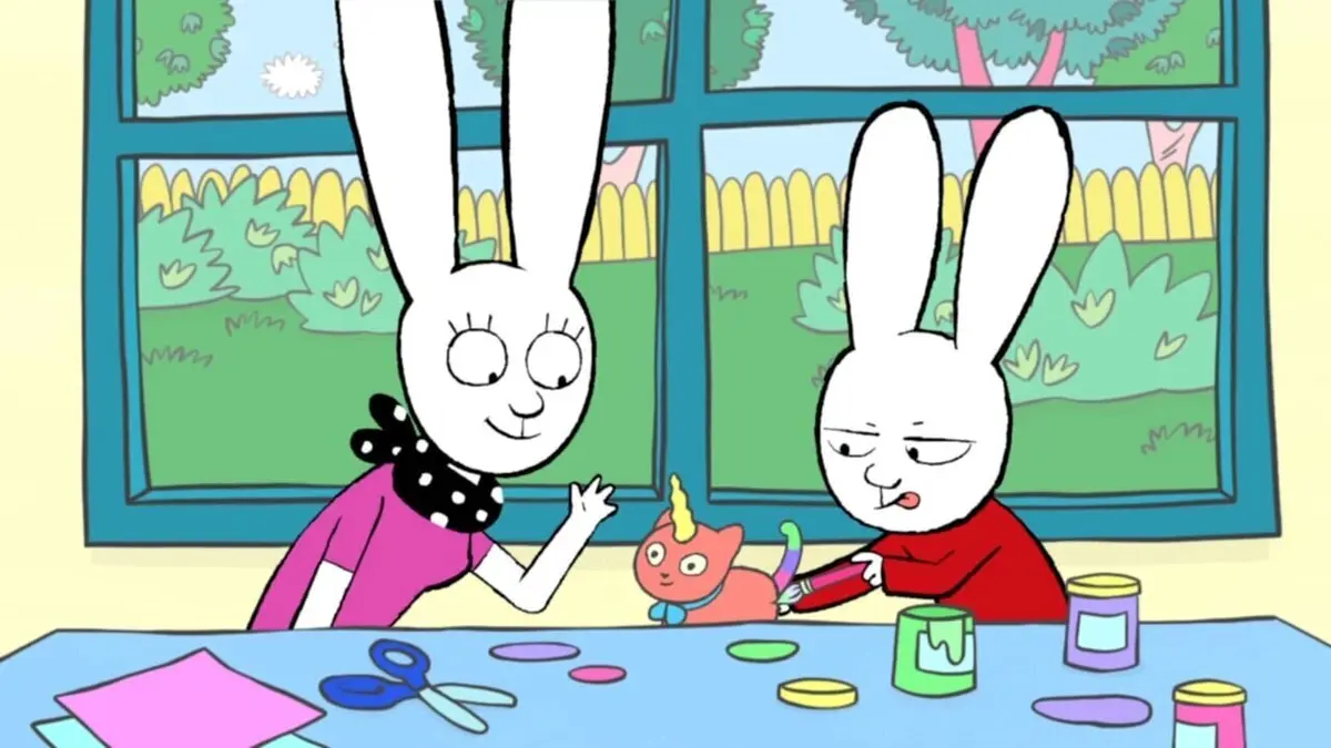 Je supprime la publicitéSimon entend Lou dire que le cadeau d'anniversaire qu'elle rêverait de recevoir serait un chaton-licorne-papillon-arc en ciel. Il décide de le fabriquer avec Maman pour l'offrir à son amie. Dans le bus avec Maman pour aller à la fête de Lou, il est distrait par la vieille dame assise à côté de lui et oublie son paquet. Il ne s'en compte qu'une fois sorti. Portant Simon sur ses épaules, Maman court derrière le bus, qui stoppe à l'arrêt suivant sans qu'elle puisse le rattraper. Heureusement la vieille dame est descendue avec le cadeau de Simon qui est heureux quand Lou peut ouvrir le cadeau espéré...