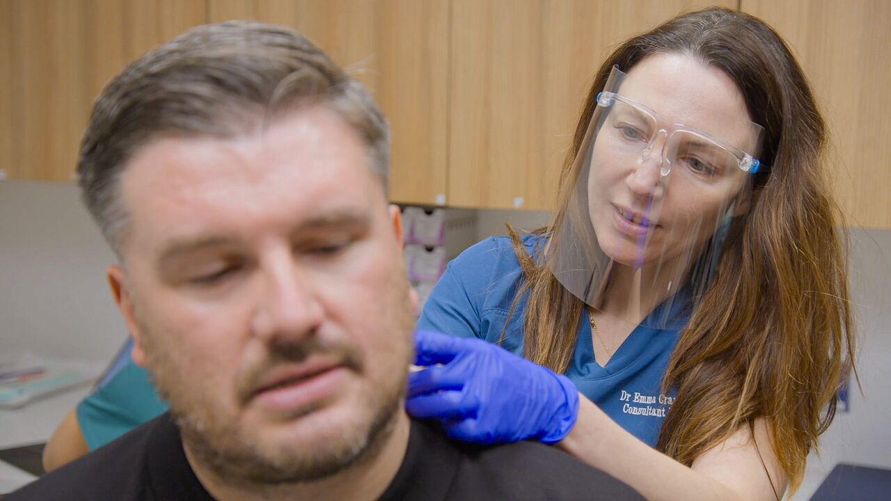 Le docteur Emma aide Alan à supprimer la protubérance sur le haut de son dos. A-t-elle un traitement pour la peau douloureuse et odorante de Jane ou le visage rouge de Danielle ?